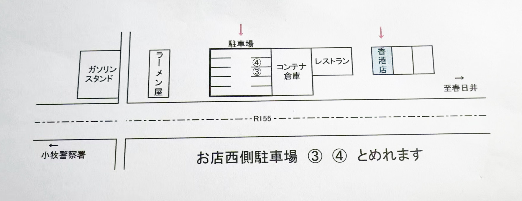 お店の隣にある駐車場の 3 番目と 4 番目にも車を止める事が出来ます